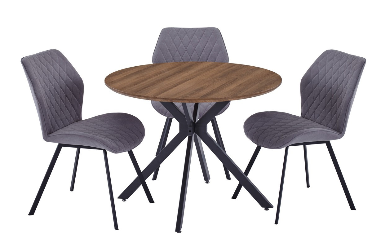 Стіл ТМ-46 стане чудовою прикрасою інтер'єру на вашій кухні. Кругла стільниця виготовлена з МДФ у кольорі "омбре". Ніжки — фарбований метал, колір "антрацит".